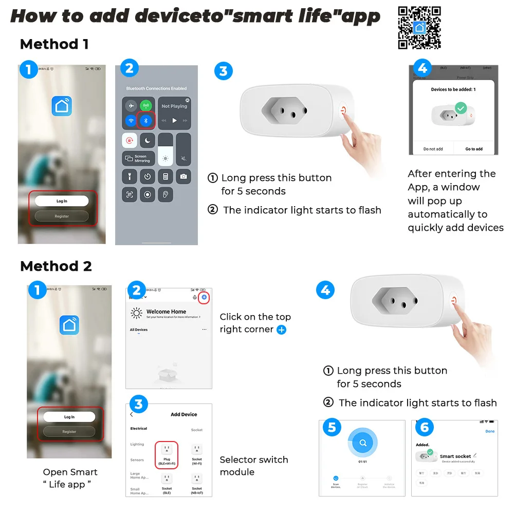 APP: "Smart Life" or "Tuya Smart"